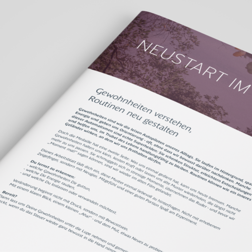 Als besonderes Geschenk zur Eröffnung meiner neuen Webseite möchte ich Dir den Schlüssel dazu an die Hand geben: mein 4-seitiges Worksheet "Neustart im Kopf".